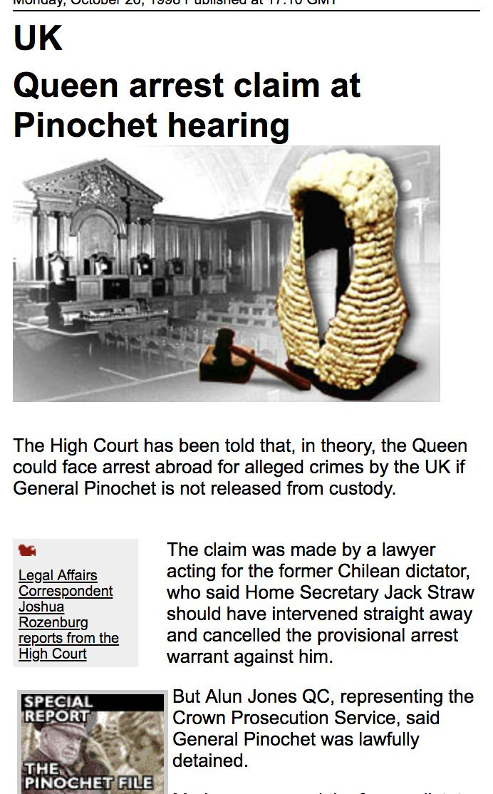 Pinochet was arrested in Britain to be extradited for his war crimes. But the British government claimed he enjoyed immunity as a former head of state because...
